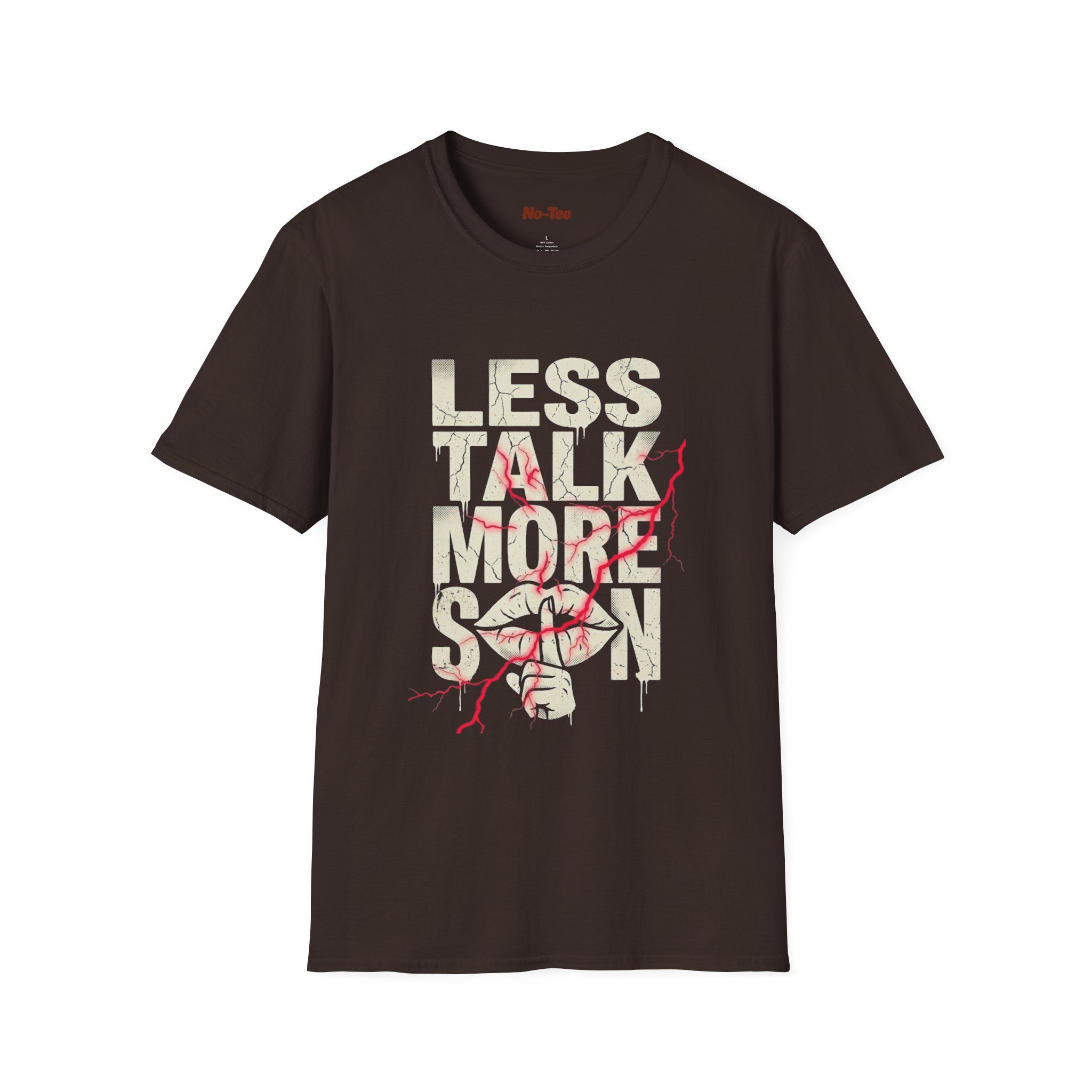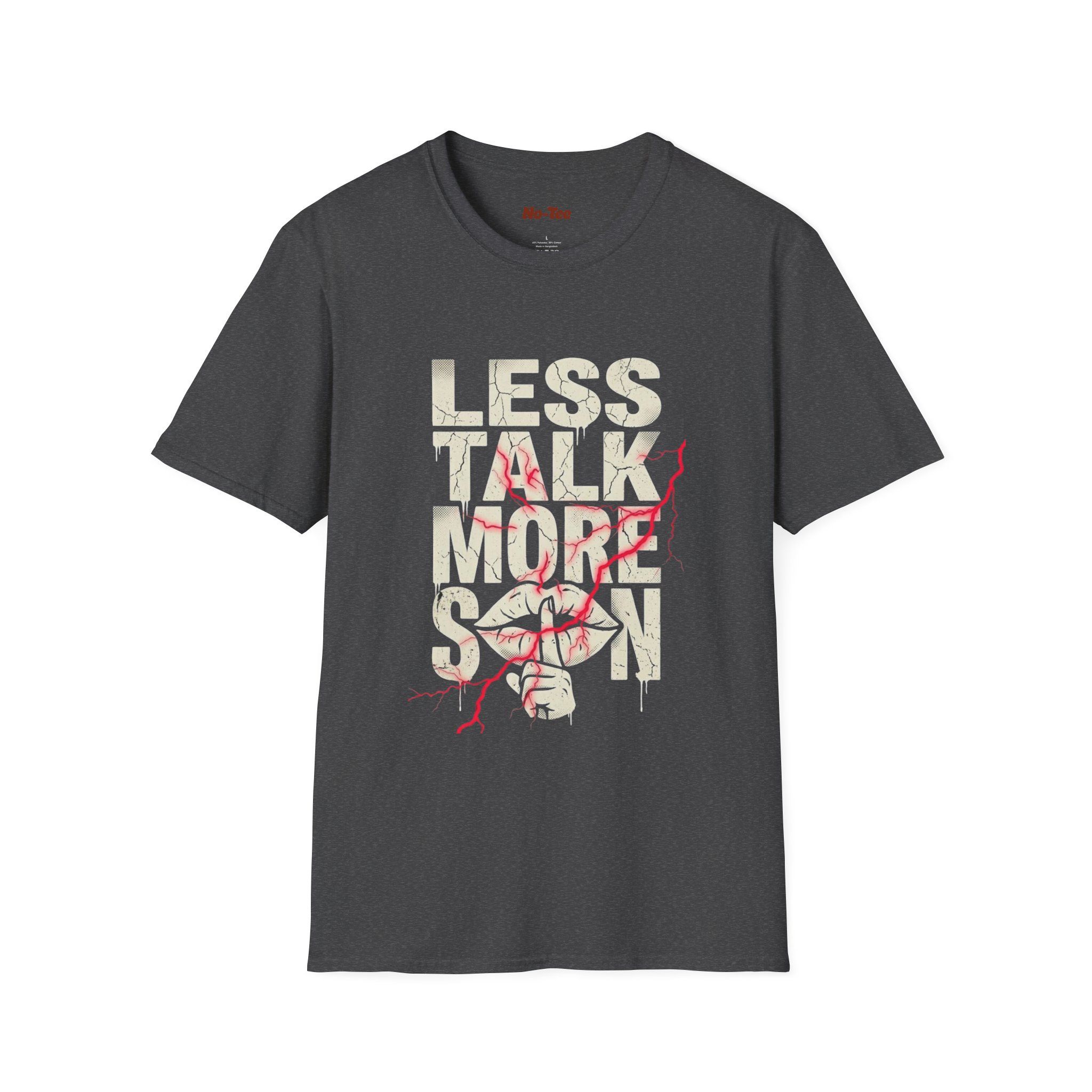 A lightweight, softly structured tee printed with the cheeky line “less talk more skin.” This shirt carries a playful, slightly rebellious energy—it’s the kind of thing you throw on for late-night hangouts, beach bonfires, or nights out when confidence needs a little nudge. The smooth ring-spun cotton and tear-away label keep the focus on comfort while the durable printing methods make the message stand out wash after wash. It drapes cleanly at the crew neck and shoulders, so it layers easily under jackets or wears on its own. For someone who prefers bold understatement and a casual, flirty vibe, this tee speaks plainly and gets the point across without fuss.
